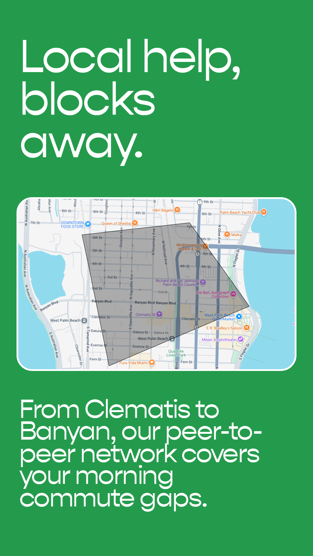 Roadcoally proudly serves one whole local zone throughout Palm Beach County to ensure fast, reliable, and community-driven personal item delivery services. Our coverage is local and small in the heart of Downtown Palm Beach. You may check the image below to see if your items are within our operating zone.